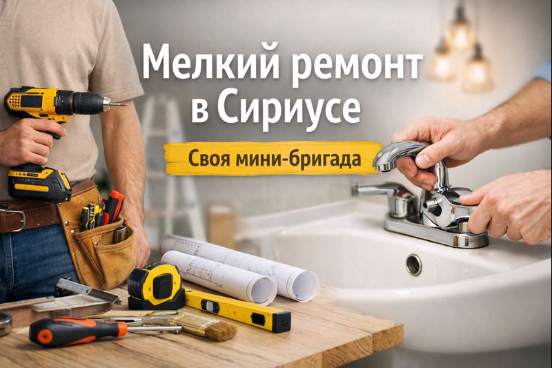- Консультация по предложению "Мелкий ремонт квартир и апартаментов | Сириус - рублей" или по другим позициям категории "Ремонт" классифайда Сириус и Цены 2026 - в 👍